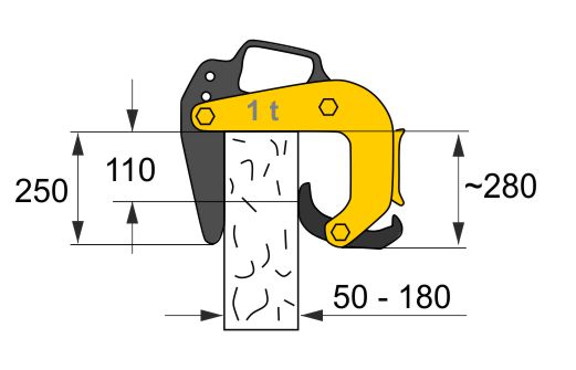 1 t teherbírású megfogó pofa 50 - 180 mm befogó mérettel.