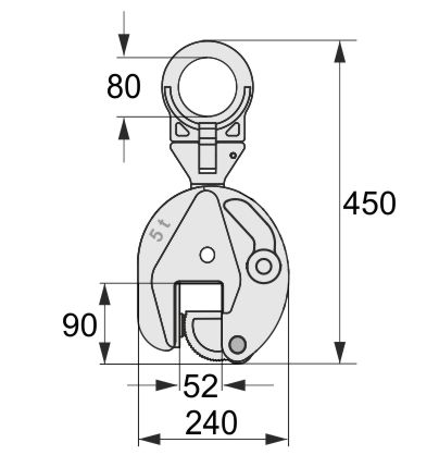 Univerzális lemezfogó 5 t teherbírással, 0 - 50 mm befogó mérettel.