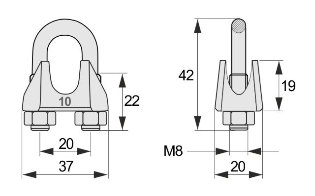 Horganyzott kötélszorító bilincs kereskedelmi minőségben, DIN 741 szerint,
