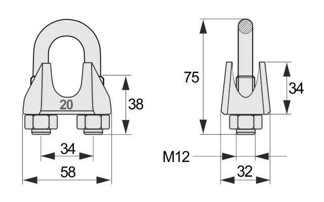 Horganyzott kötélszorító bilincs kereskedelmi minőségben, DIN 741 szerint,