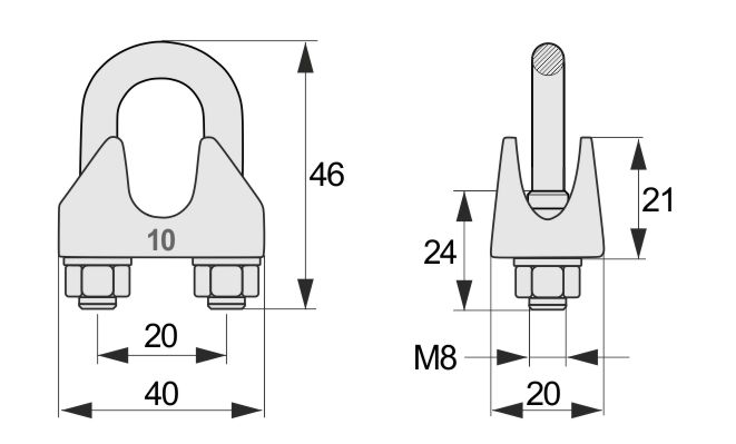 9-10 mm átmérőjű sodronykötelekhez.