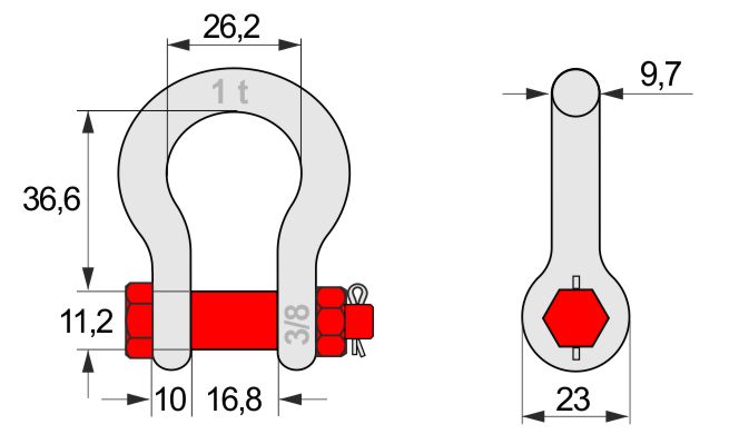 Kovácsolt, horganyzott test festett csappal, anyás és csapszeges biztosítással.