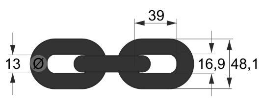 13 mm névleges méretű EN 818-2 teherlánc.