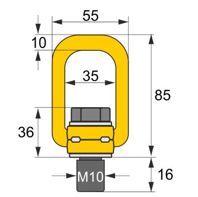 M10 névleges méretű 10-es szilárdsági osztályú csapágyozott emelőszem.