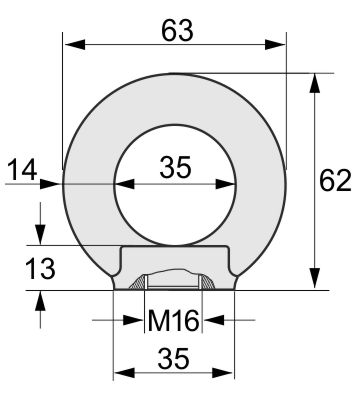 M16 névleges méretű horganyzott gyűrűsanya DIN 582 szerint.