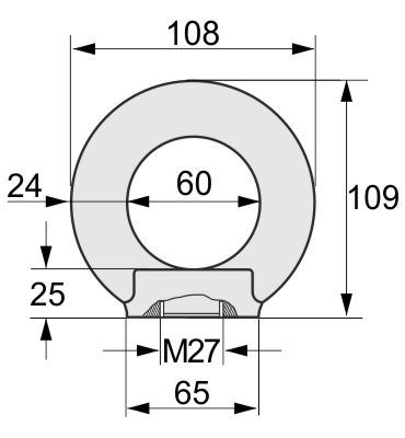 M27 névleges méretű horganyzott gyűrűsanya DIN 582 szerint.