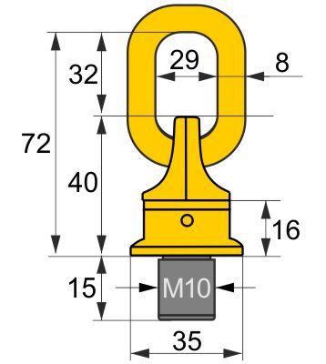 M10 névleges méretű 10-es szilárdsági osztályú csapágyozott emelőszem.