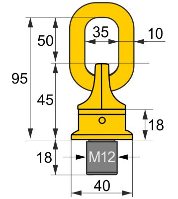 M12 névleges méretű 10-es szilárdsági osztályú csapágyozott emelőszem.