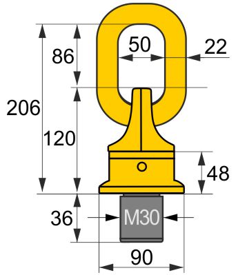 M30 névleges méretű 10-es szilárdsági osztályú csapágyozott emelőszem.