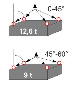 Terhelhetőség és méretek (mm) - teljes méretsorozat: