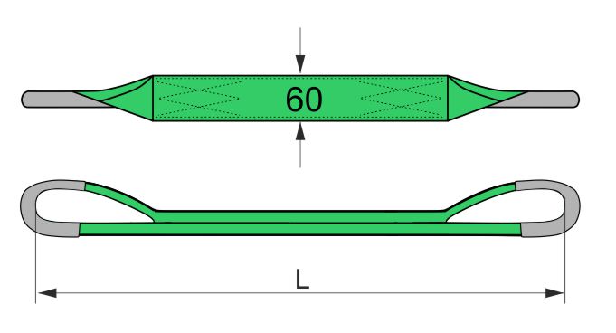2 t teherbírású, kétrétegű poliészter emelőheveder.