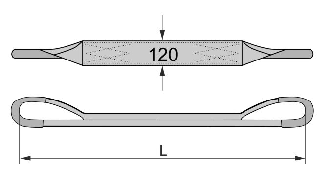 4 t teherbírású, kétrétegű poliészter emelőheveder.